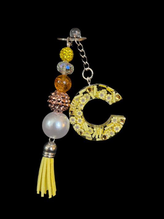 Sunflowers and Bumble Bees Initial Keychains - Accessories by Sparkle Studio