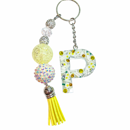 Sunflowers and Bumble Bees Initial Keychains - Accessories by Sparkle Studio
